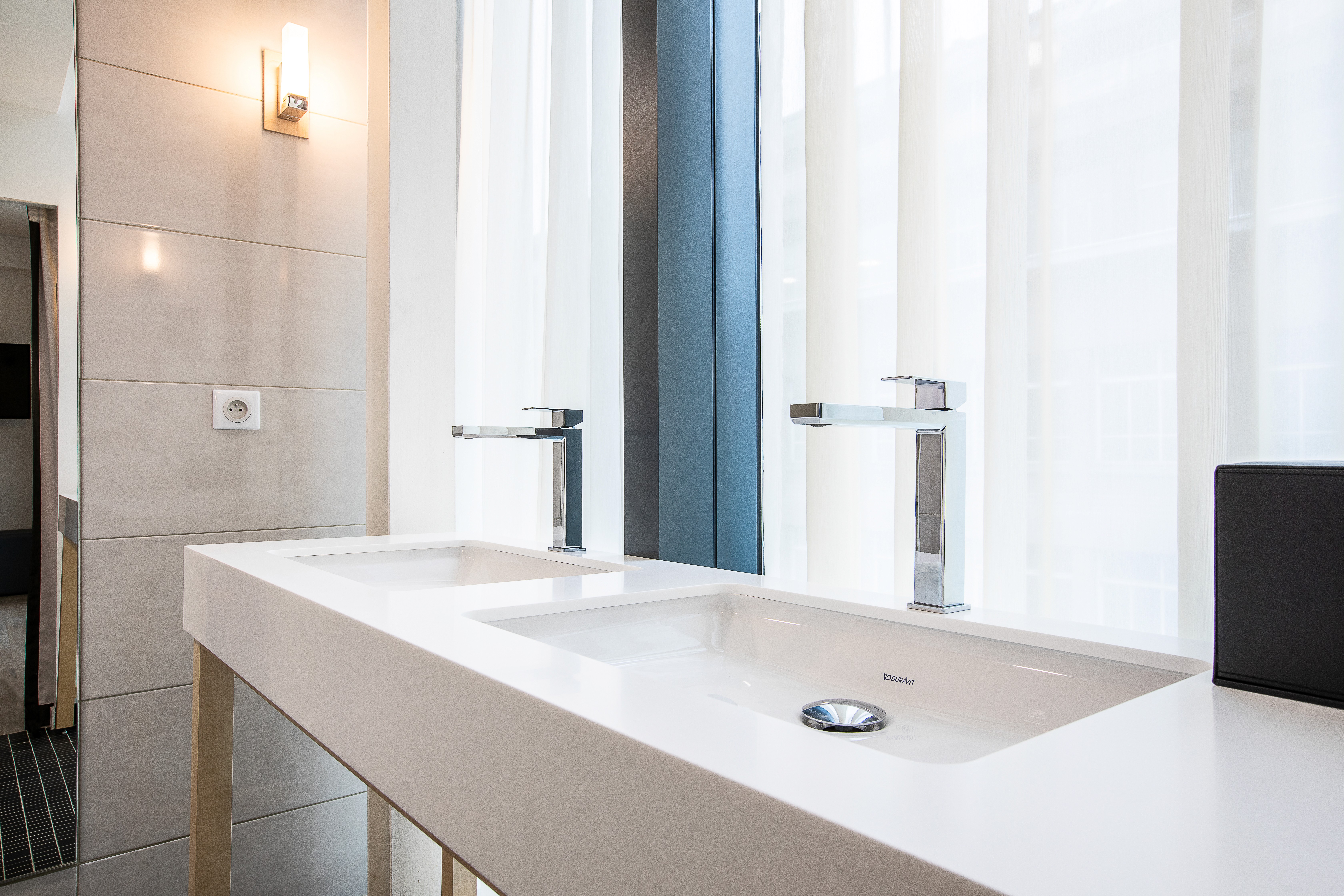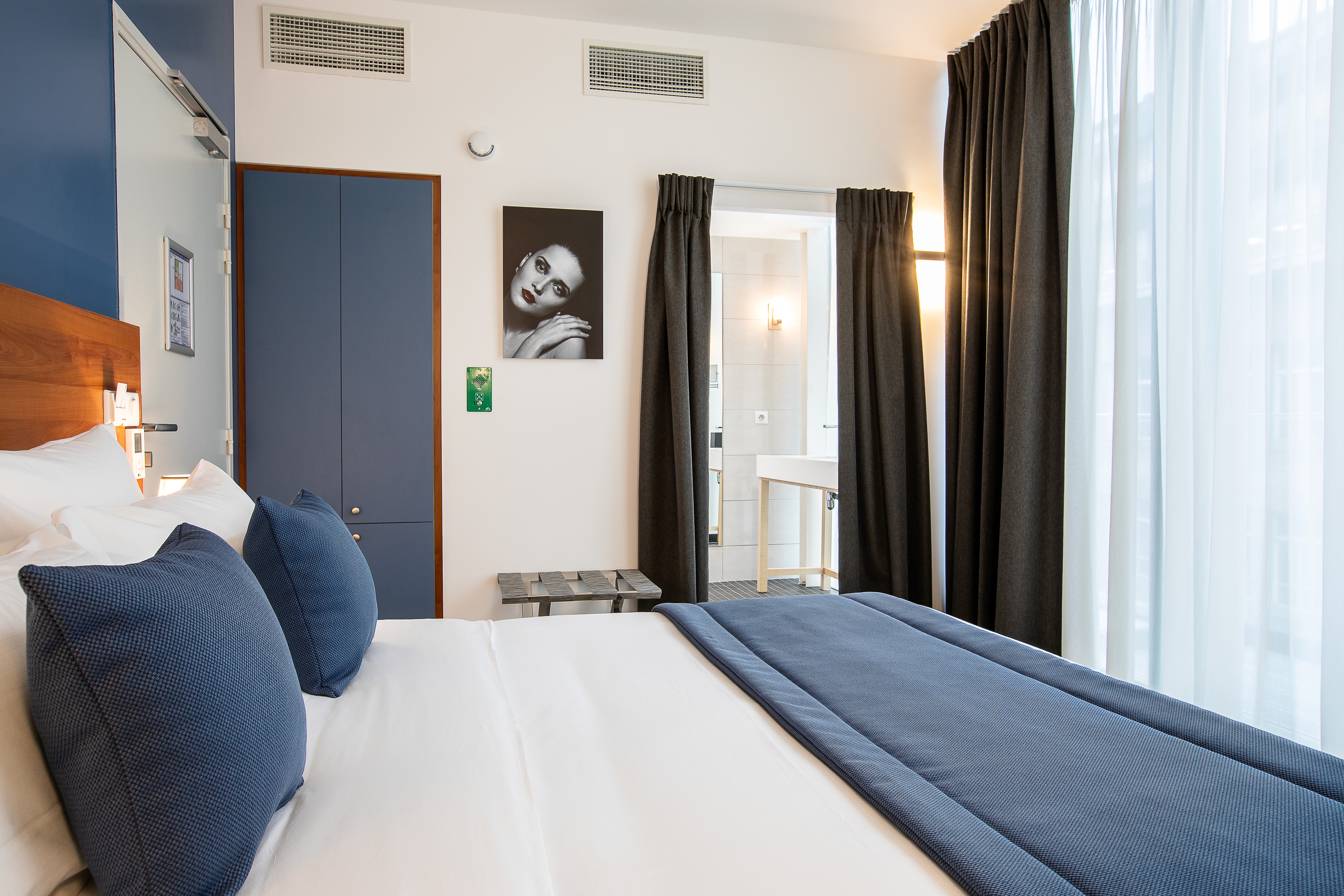 Offrez-vous le luxe de l'espace et du grand air. Cette chambre supérieure de 20m² se distingue par sa superbe terrasse (ou balcon) aménagée, véritable pièce supplémentaire pour savourer un café ou un verre de vin face aux toits parisiens.